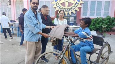 The Rotary Club of Silchar donated winter clothing to a person with. . .